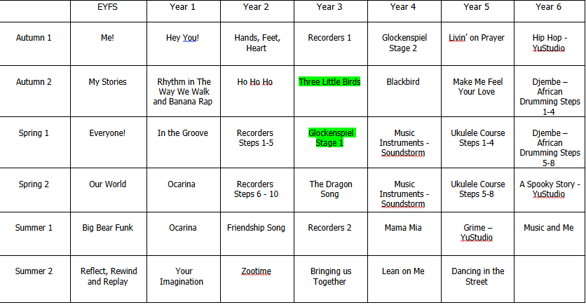 Lessons are lively, inclusive and designed to enable all children to participate fully, regardless of experience or ability. The scheme allows for clear progression, with each year group building on prior learning to develop key musical skills such as pitch, rhythm, pulse, tempo and dynamics.
